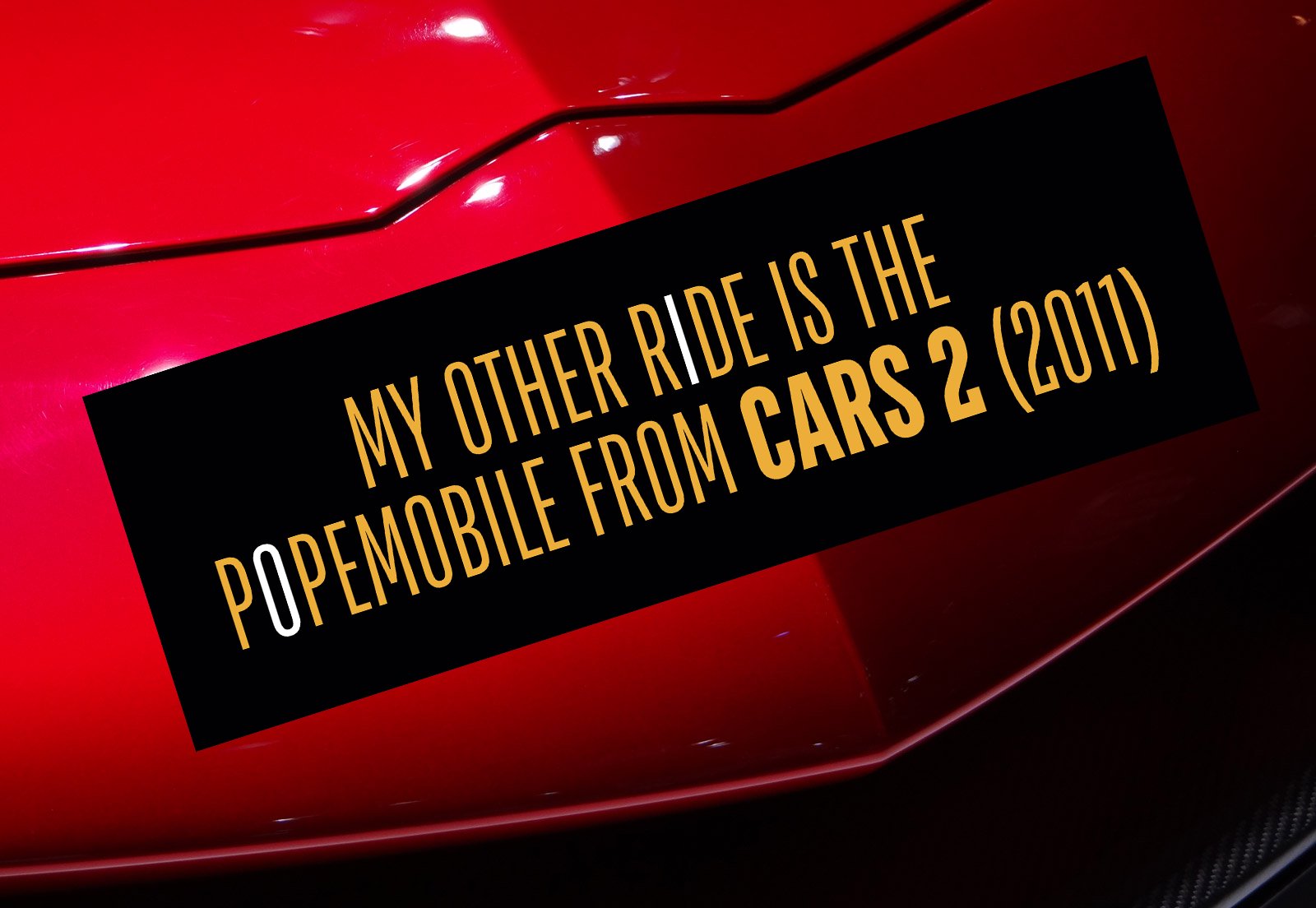 Which one is the Popemobile...? Made to order. Shipped and fulfilled separately! (We will partially refund you shipping reimbursement if ordered with other bumper stickers!)